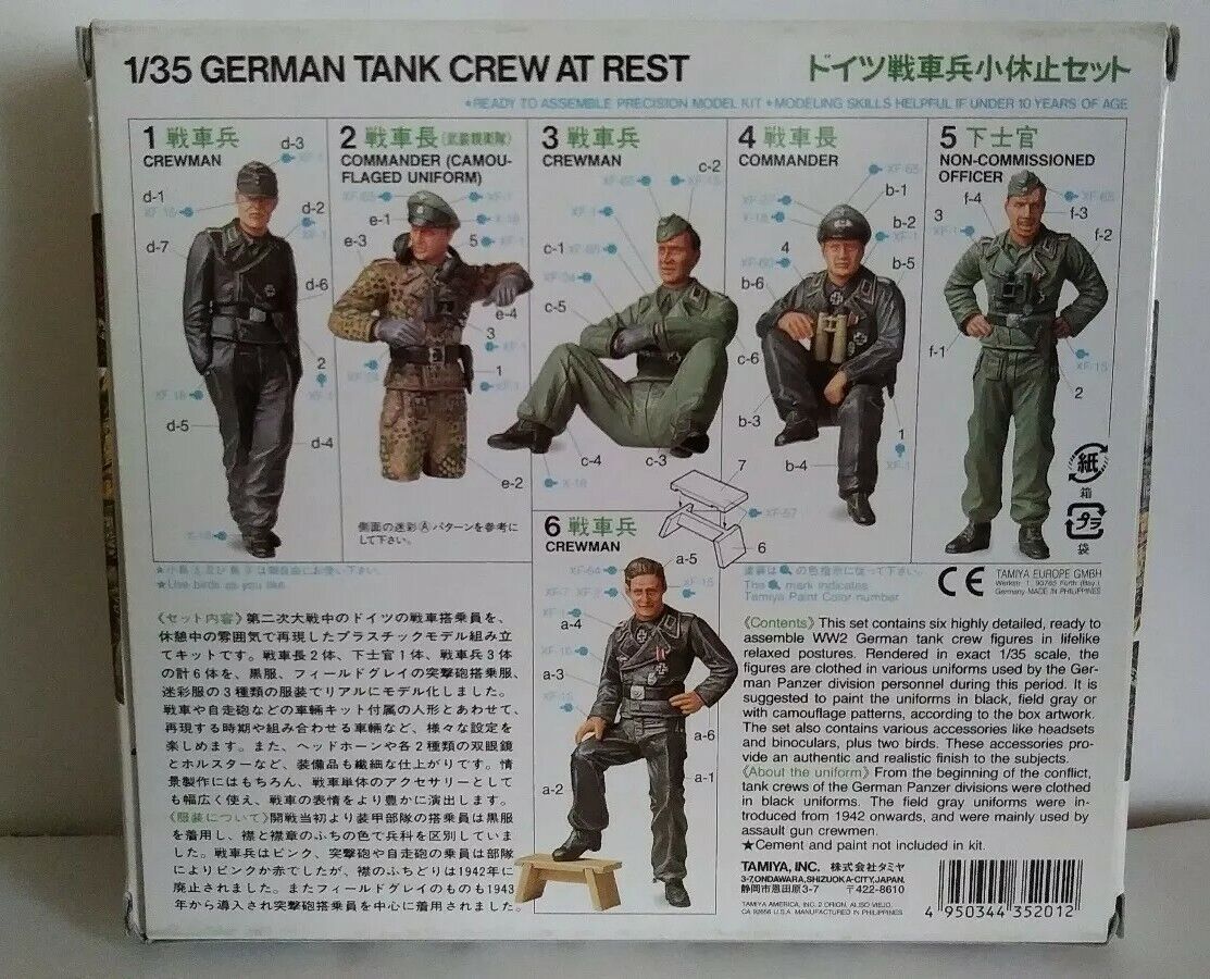 GERMAN TANK CREW AT REST TAMIYA SCALA 1/35. SET COMPLETO, CONDIZIONI OTTIME, IN SCATOLA ORIGINALE. QUALCHE SEGNO DEL TEMPO (VENATURE E PIEGHE) NELLA SCATOLA
